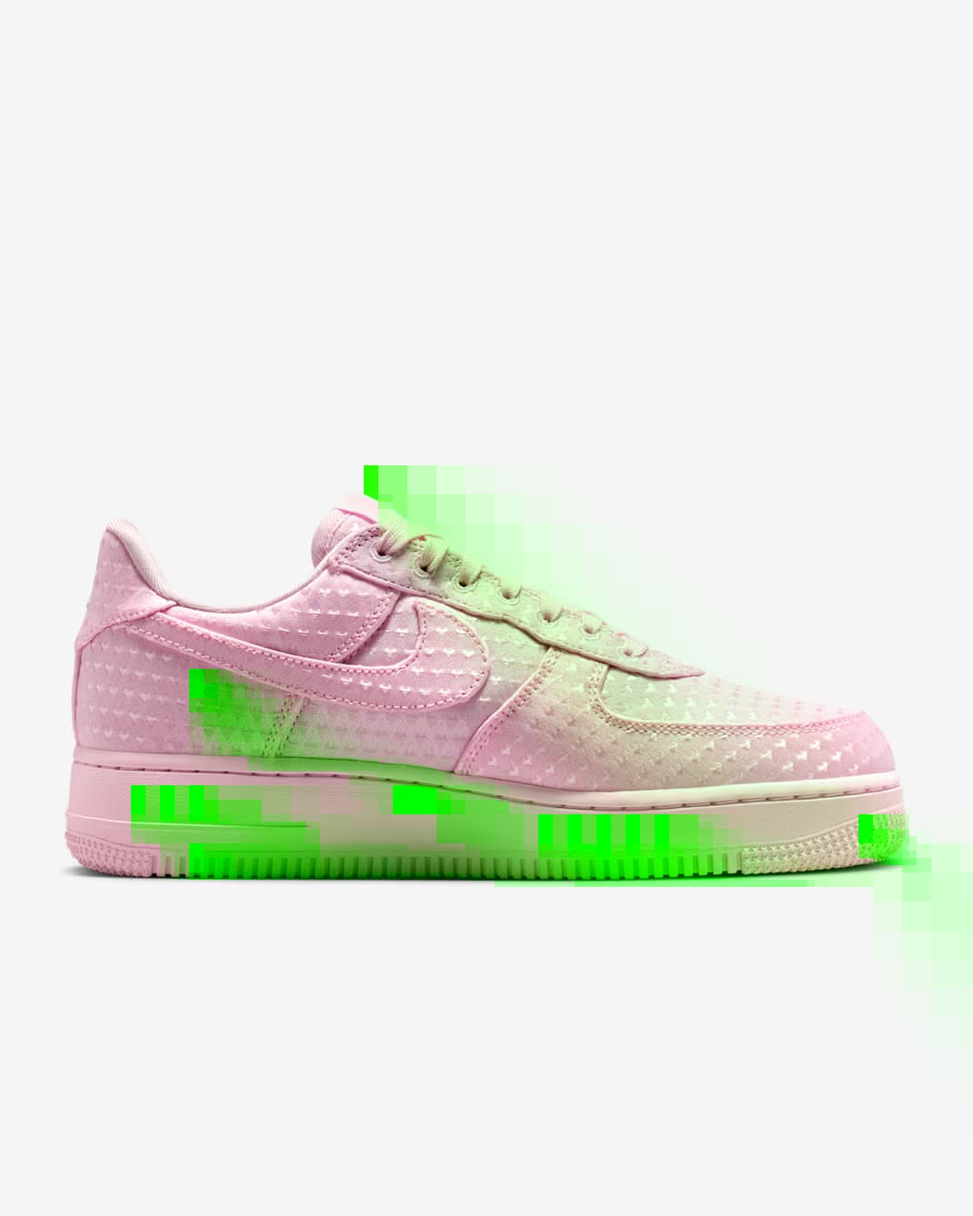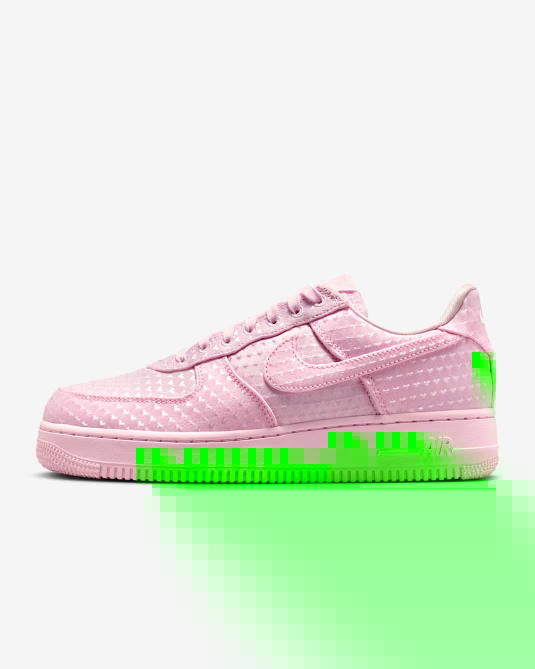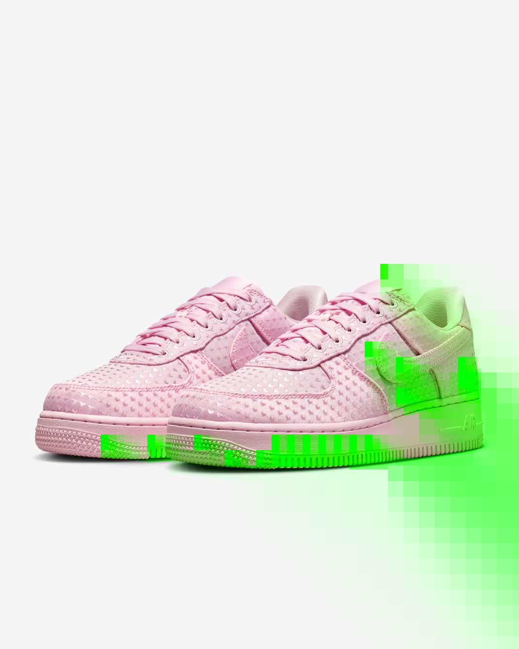 Het gaat hier om twee nieuwe colorways uit het Nike Air Force 1 ‘Valentine’s Day’ pack: ‘Pink’ en ‘University Red’. Beide uitvoeringen hebben een monochromatische uitstraling, gekenmerkt door een all-over print van kleine hartjes, net als bij de eerder getoonde zwarte colorway.
