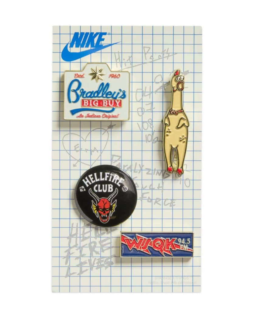 Naast deze branding zijn er nog enkele verwijzingen van Stranger Things toegevoegd, zoals de branding op de binnenzool. Ook de verpakking heeft een uniek design, met een doos in vintagestijl, bedrukt papier en een setje pins gebaseerd op de serie.
